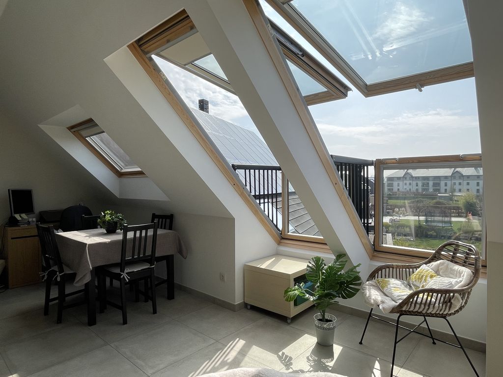 Magnifique appartement très lumineux, 1 chambre situé au 3ème étage d'une résidence avec ascenseur situé à Gembloux. Il comprend un séjour avec cuisine américaine hyper équipée, salle de bains avec baignoire, une buanderie. Matériaux de qualité, excellente isolation, plan de travail en granit noir, chaudière à condensation, ventilation mécanique contrôlée simple flux, vidéophonie, …Les luminaires, les tringles et les stores des vélux sont inclus. Libre le 1er octobre 2024. Renseignements complémentaires au 081/23.03.43