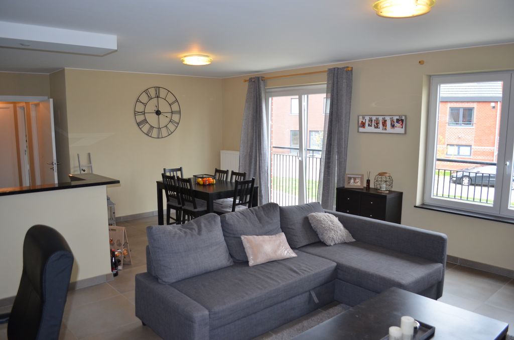Au calme, dans une résidence récente avec ascenseur, bel appartement 2 chambres de 76m² situé au 1er étage. Il comprend un vaste séjour avec cuisine américaine hyper équipée, salle de bains avec baignoire, une buanderie, une terrasse de 11m² ainsi qu'une cave. Matériaux de qualité, plan de travail en granit, chaudière à condensation, ventilation mécanique contrôlée simple flux, vidéophonie, ... Les luminaires et les tringles sont inclus, libre le 1er avril. Renseignements complémentaires au 081/23.03.43