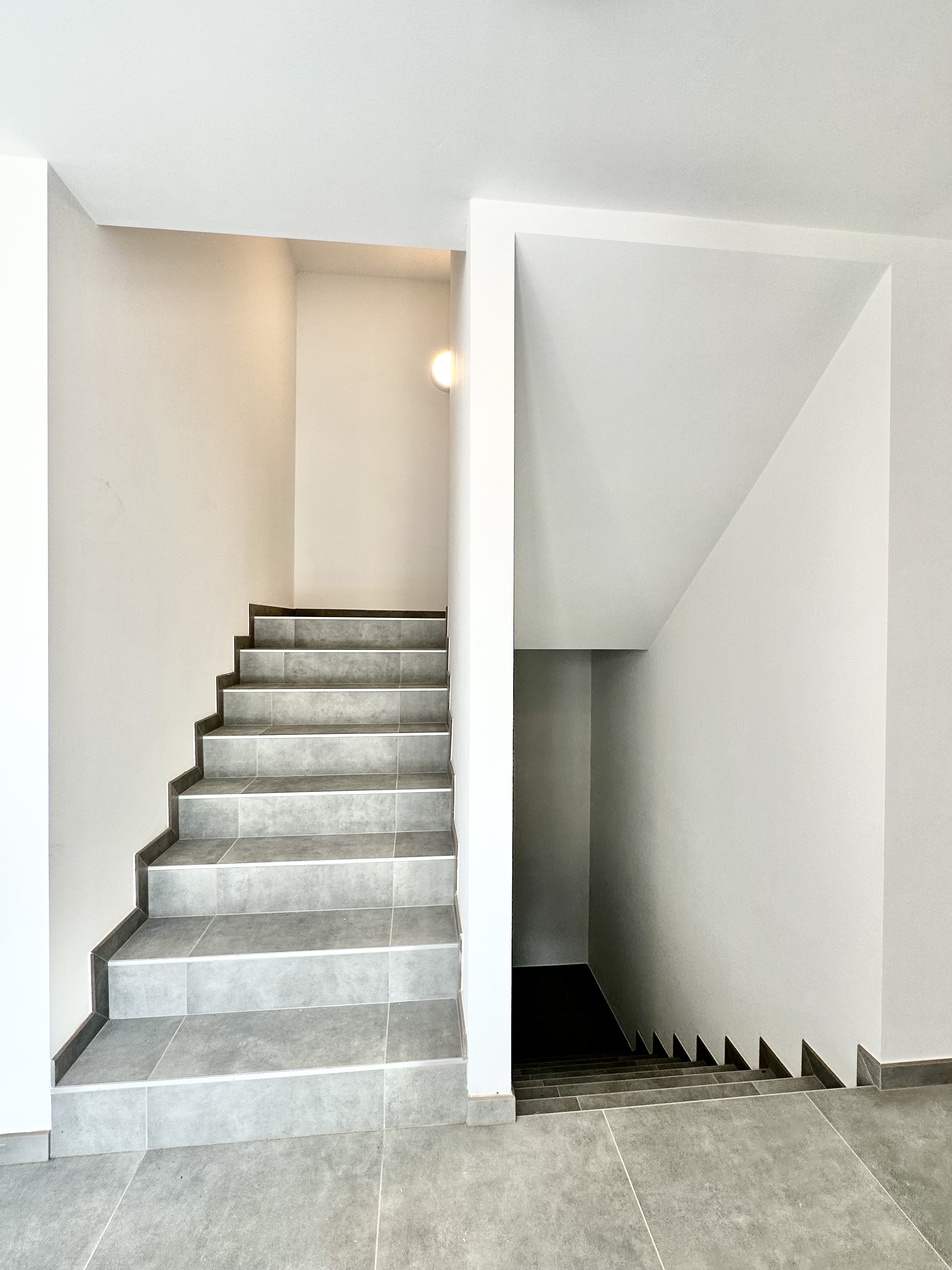 - Salle de bains: (2.27x1.57) 3.56m², carrelage, meuble lavabo, baignoire, wc suspendu geberit,