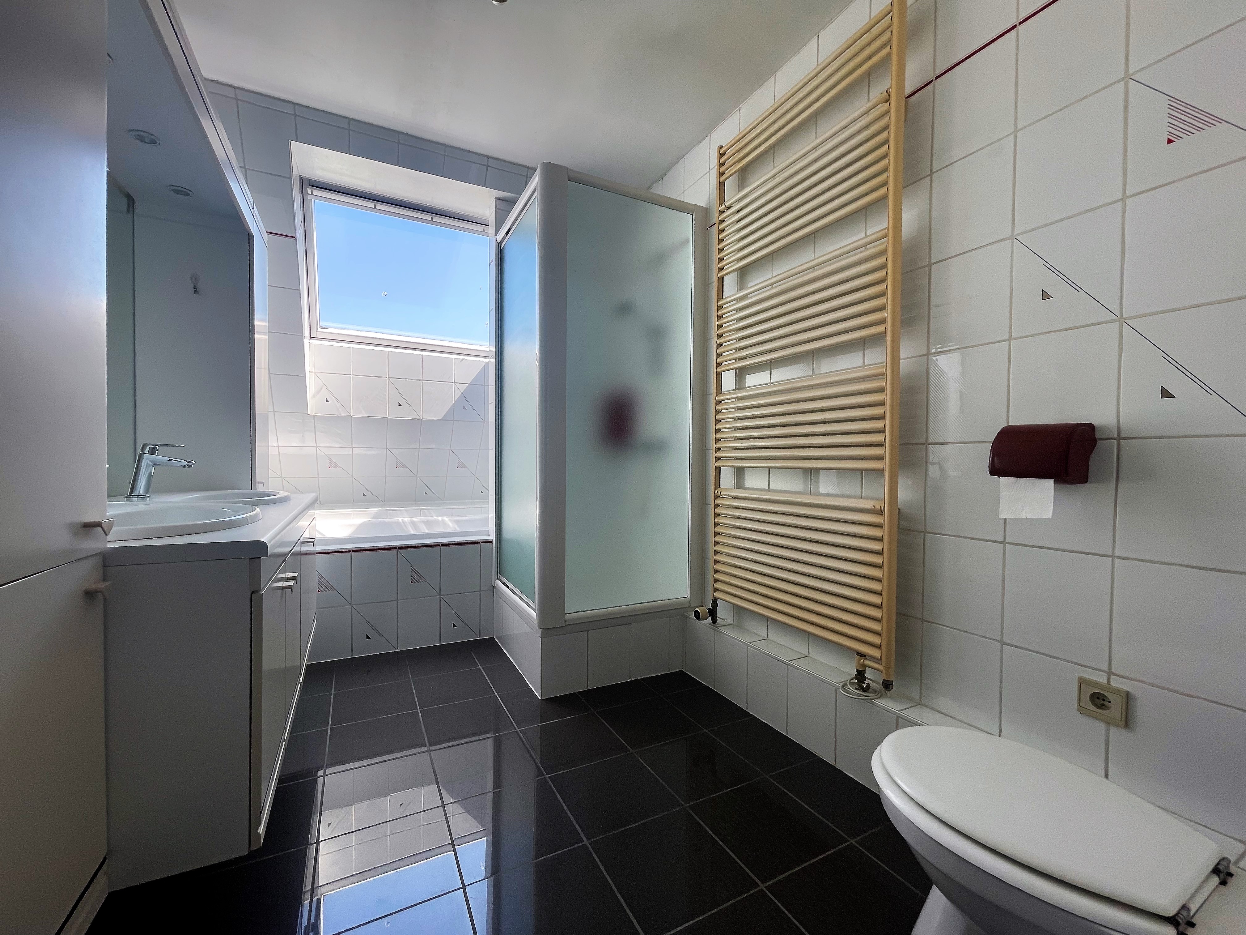 - Salle de douches: (3.94x2.16) 8.51m², carrelage, baignoire, douche, meuble double lavabo, wc, sèche serviettes