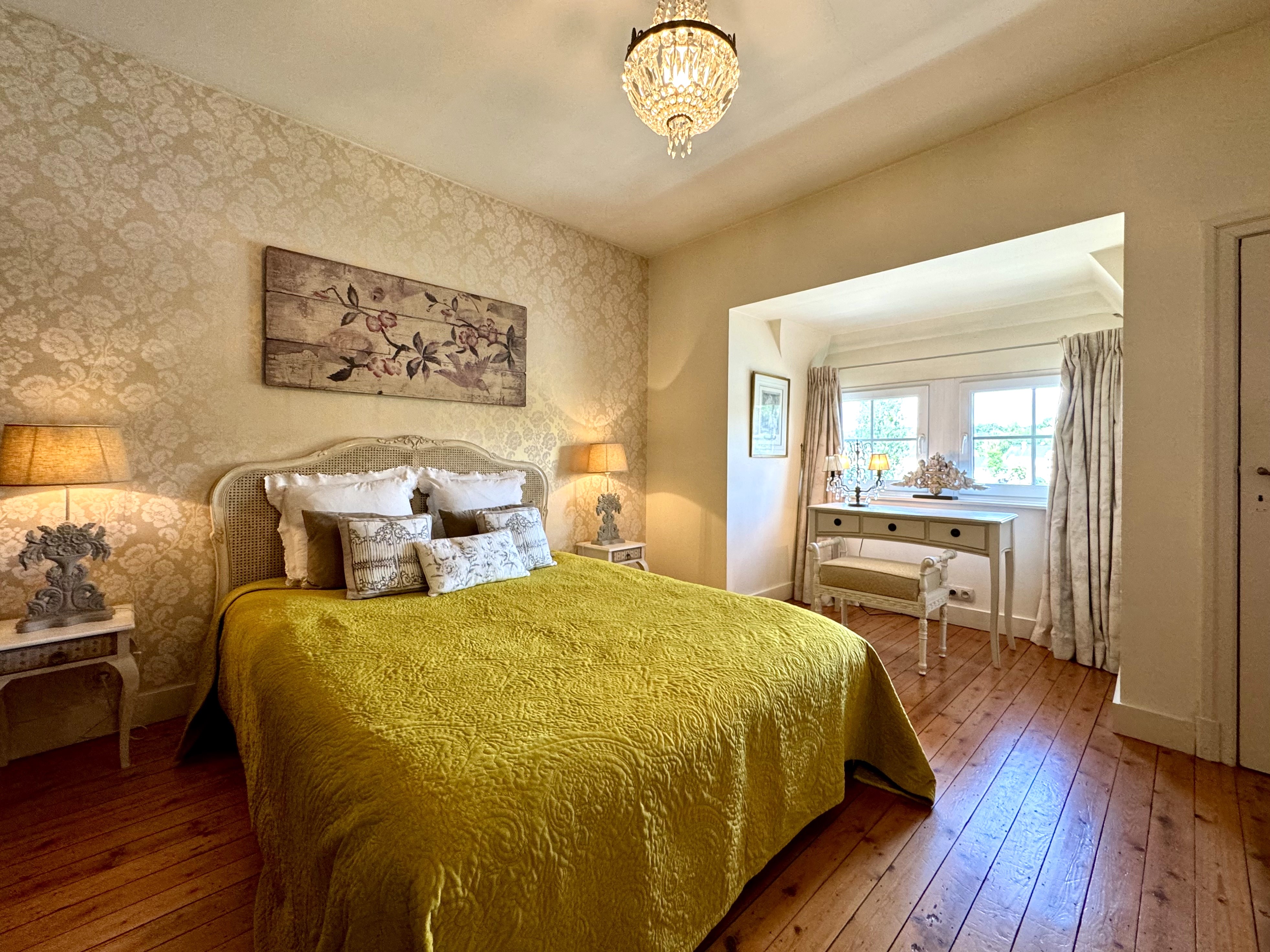 - Chambre: (3.85x4.28) 16.48m², plancher, placards en chêne massif, alcôve
