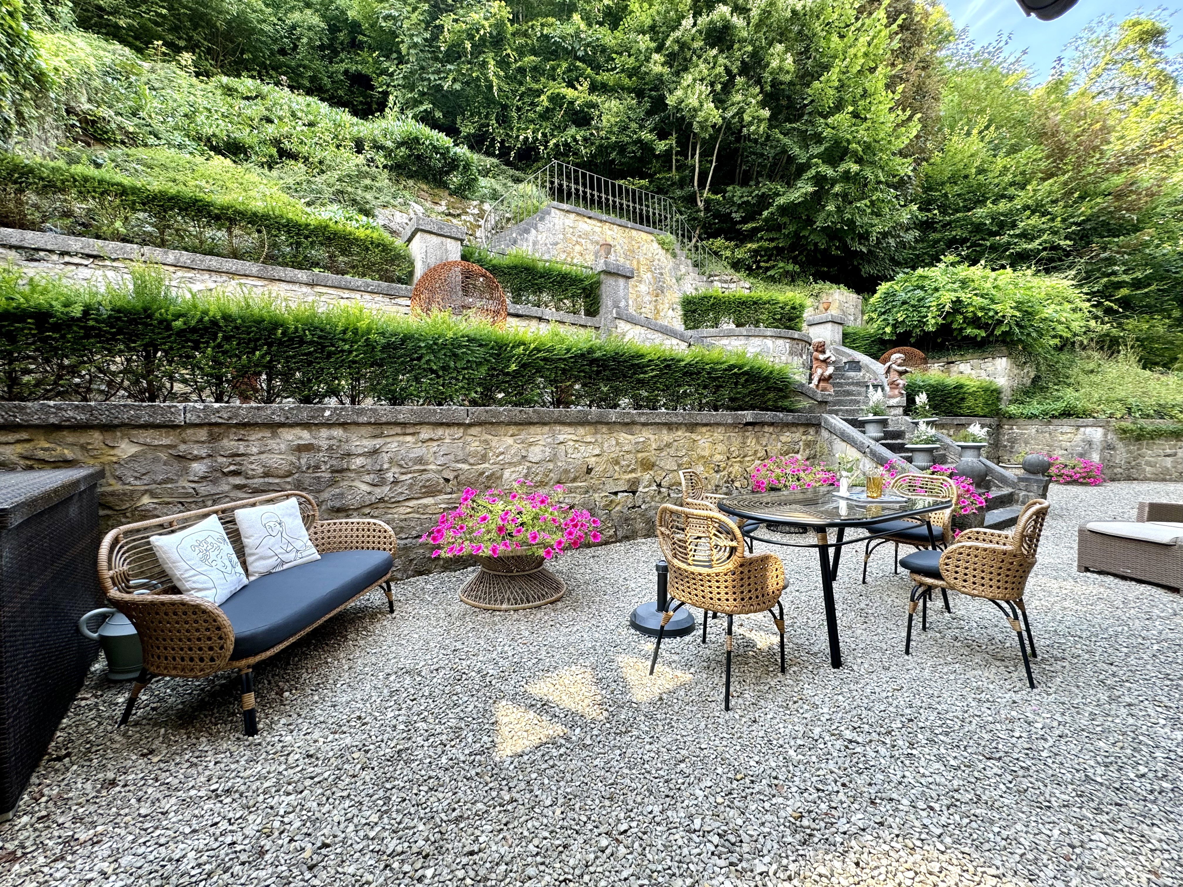 Joyau d'exception, édifié en 1903 à Wépion, sur une parcelle de 16 ares 11 ca. Surplombant la Meuse, les pièces bénéficient d’une vue splendide, s'étendant jusqu'aux imposants remparts de la Citadelle. Cette demeure raffinée fusionne subtilement l’élégance du cottage anglais et le charme de l’esprit français. Ses moulures, ses boiseries et ses somptueux revêtements de sol vous invitent à un véritable voyage dans le temps. Restaurée avec minutie ce manoir se distingue par ses prestations d’une qualité remarquable et ses pièces de réception. Il comprend également quatre suites somptueuses pouvant être exploitées en chambres d’hôtes, ainsi qu’une suite parentale, des caves et un garage. Le jardin en terrasses ajoute une touche de charme à cet écrin de prestige. Cette offre d'hébergement fut élue parmi les 3 plus belles maisons d’hôtes de Belgique par le salon international des chambres d’hôtes. Libre à l'acte. Renseignements complémentaires au 081/23.03.43.
