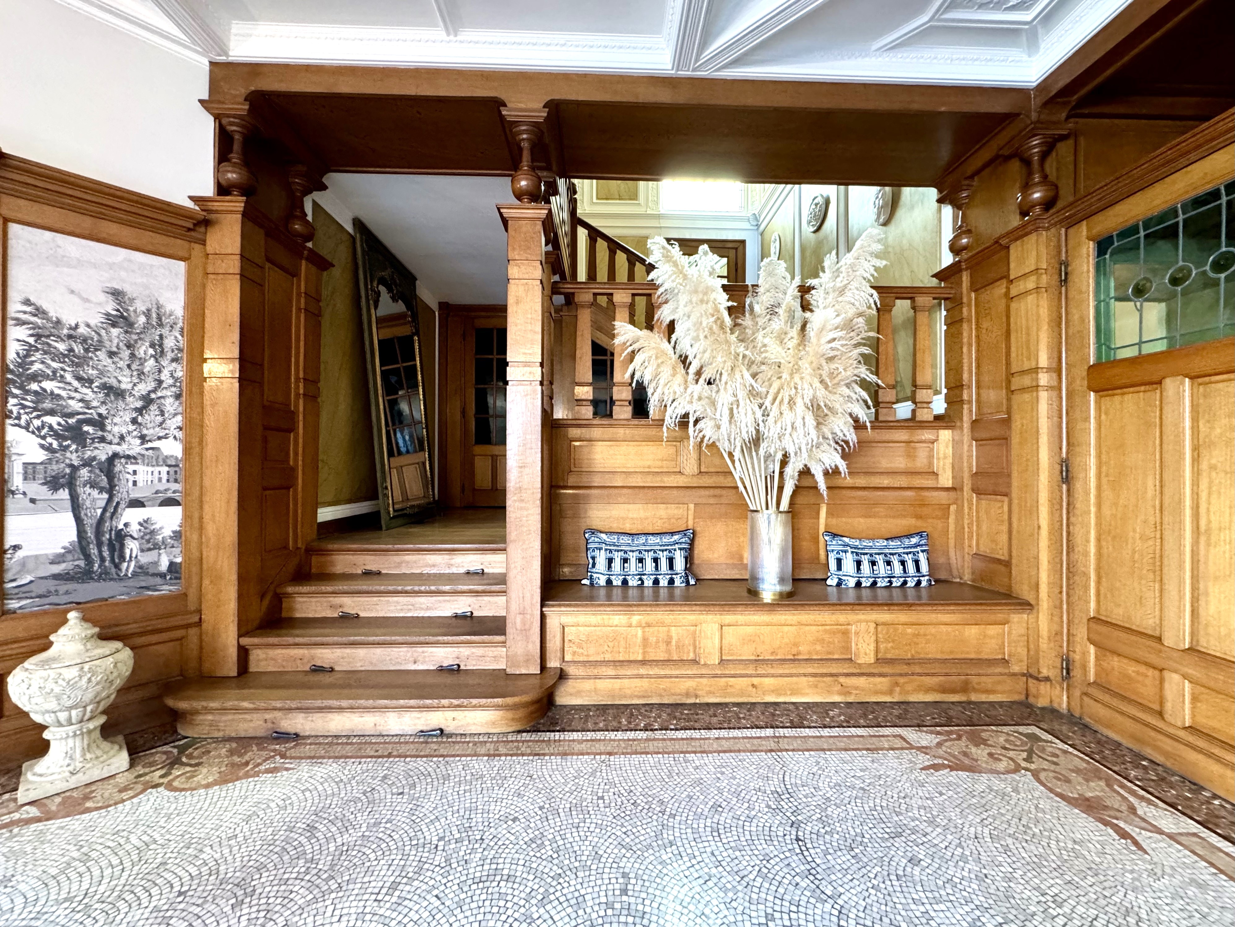 - Salle de réception: (8.54x5.38) 45.95m², mosaïque, nombreuses menuiseries, panoramiques réédités des 18ème et 19ème siècles