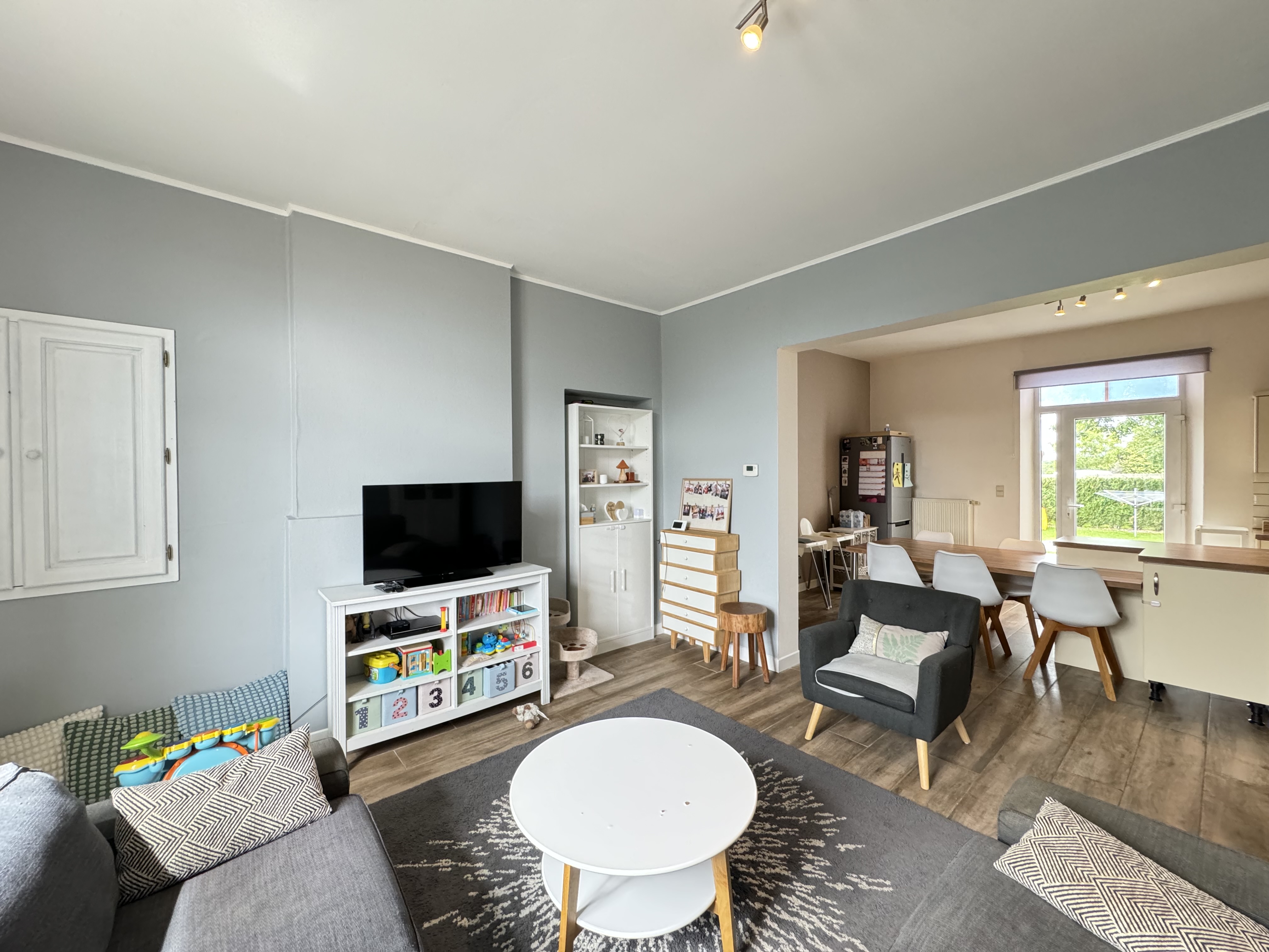 Saint-Aubin - S-Immo vous propose cette maison 3 façades implantée sur une parcelle de 3 ares 35 avec terrasse et jardin. Elle dispose d'un lumineux séjour donnant sur une cuisine américaine avec ilot central, de 3 chambres, une salle de douches, un grenier aménageable, et une cave. Côté technique, on retrouve un chauffage au mazout, un compteur bi-horaire avec une électricité conforme, et des châssis double vitrage. Cette maison chaleureuse ne pourra que vous séduire. A visiter sans tarder. Renseignements complémentaires au 081/23.03.43