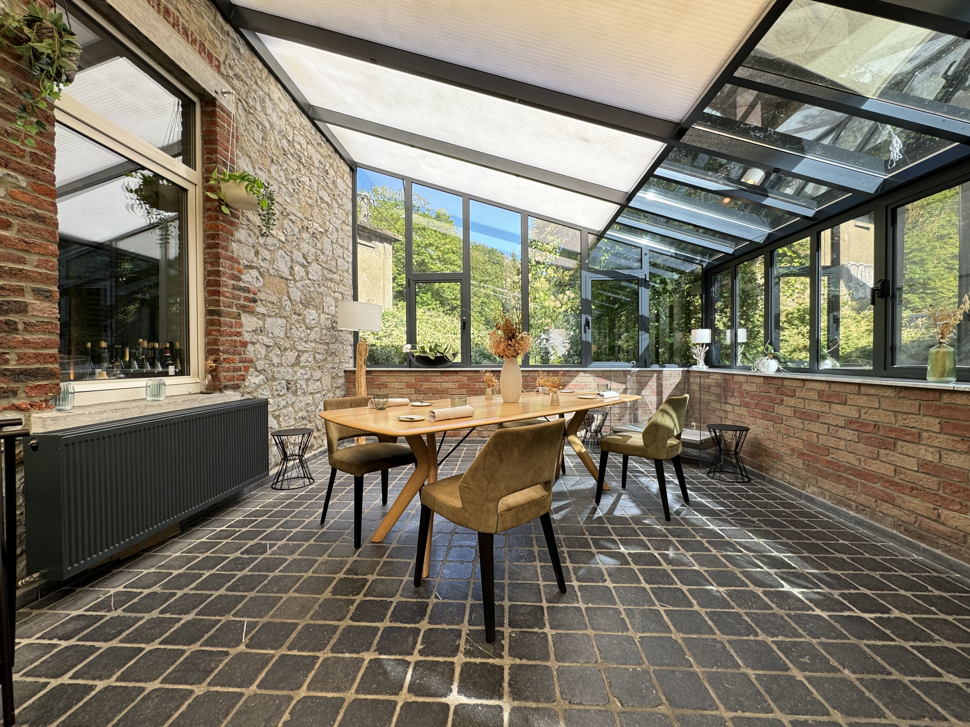 Immeuble mixte situé à Floreffe. Il est implanté sur une parcelle de terrain de 3 ares et 30 centiares. Il se compose d’un rez de-chaussée commercial magnifiquement aménagé avec une superbe véranda, actuellement exploité en restaurant. Il comprend également 1 appartement 2 chambres de +-120m², un étage de 120m² à confortabiliser ainsi qu’un grenier aménageable accessible par un escalier fixe. Un parking privatif de 10 places et des caves sont également présents. Renseignements complémentaires au 081/23.03.43.