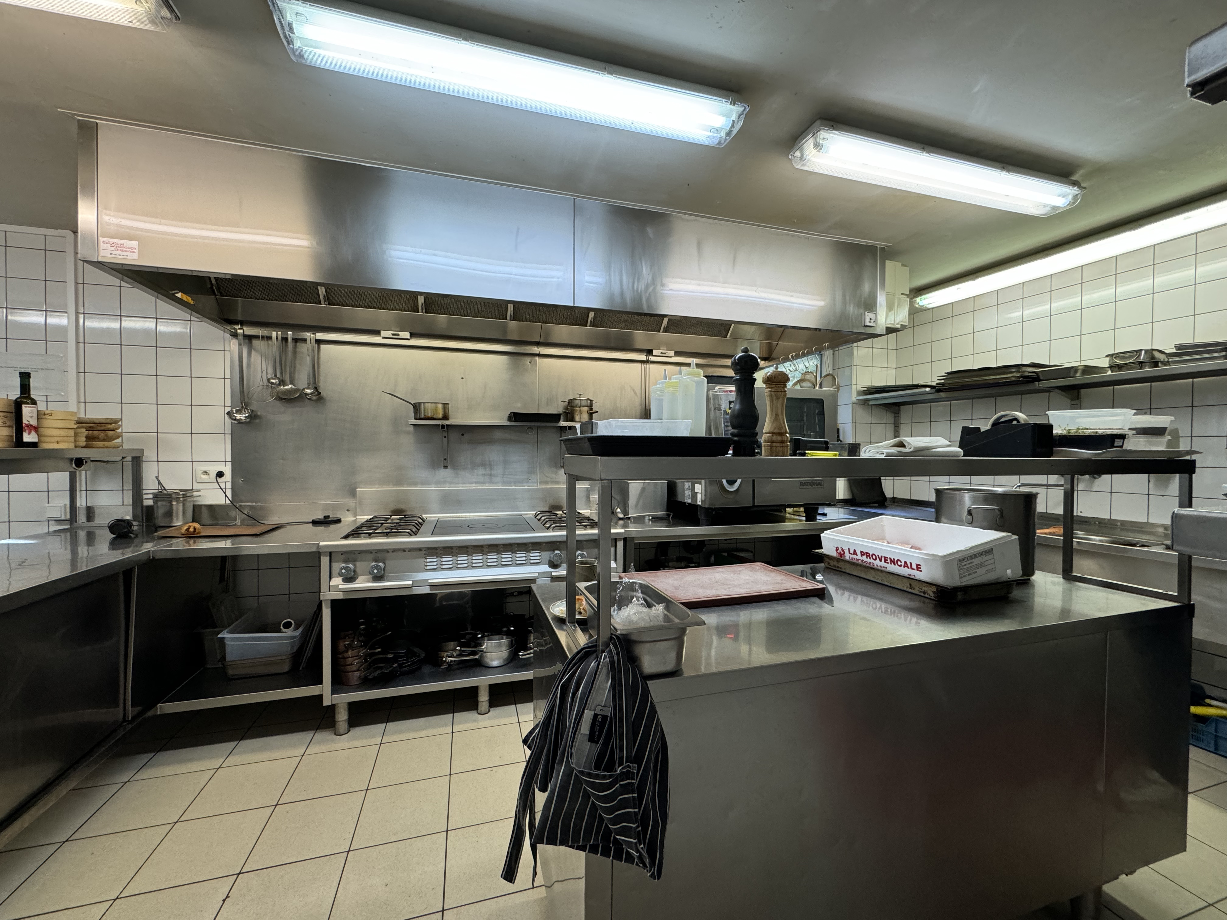 - Cuisine professionnelle 2 équipée pour le froid: (4,60x4,58) 21.14m² + 5,16m² = 26,30m², carrelage, accès à l’étage, chambre froide