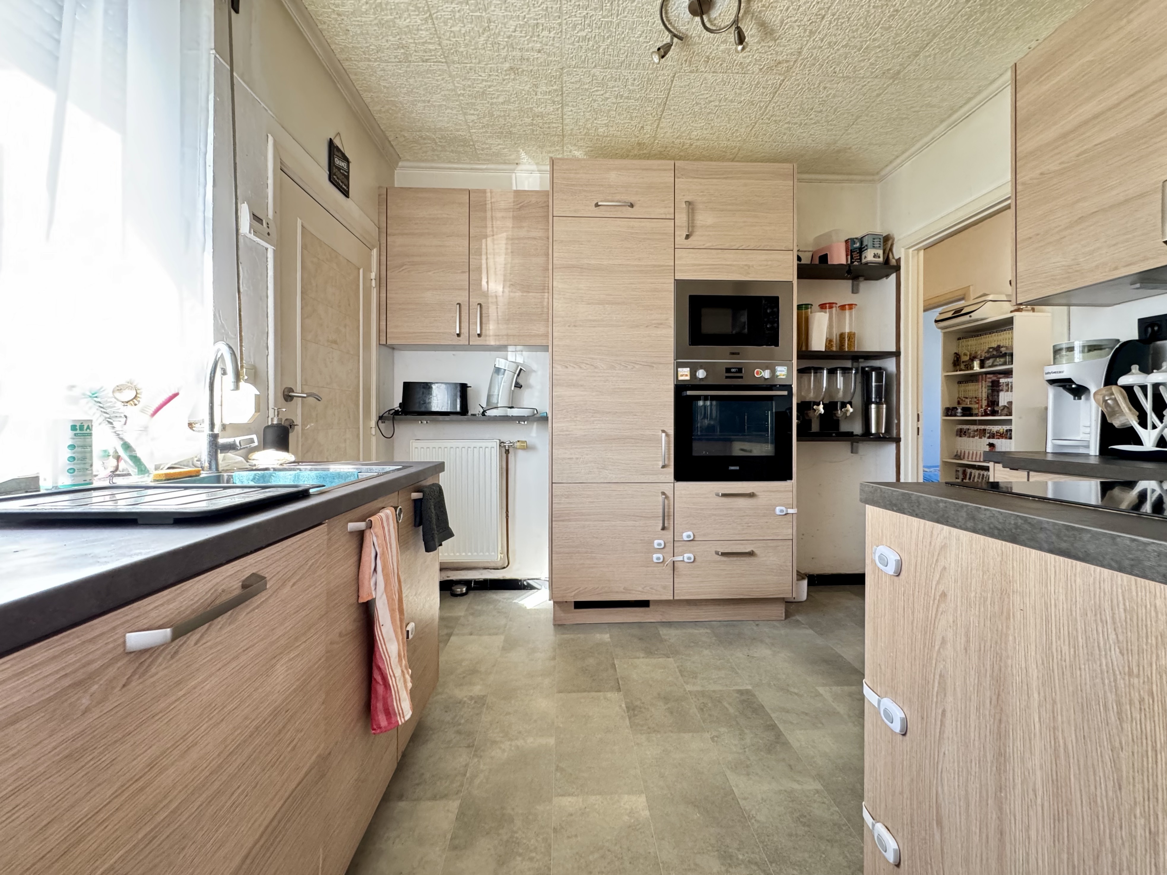 - Cuisine équipée: (2.77x3.08) 8.38m2, vinyle, double évier, lave-vaisselle, taque à induction, hotte, micro-ondes encastré, four encastré, frigo, thermostat d’ambiance