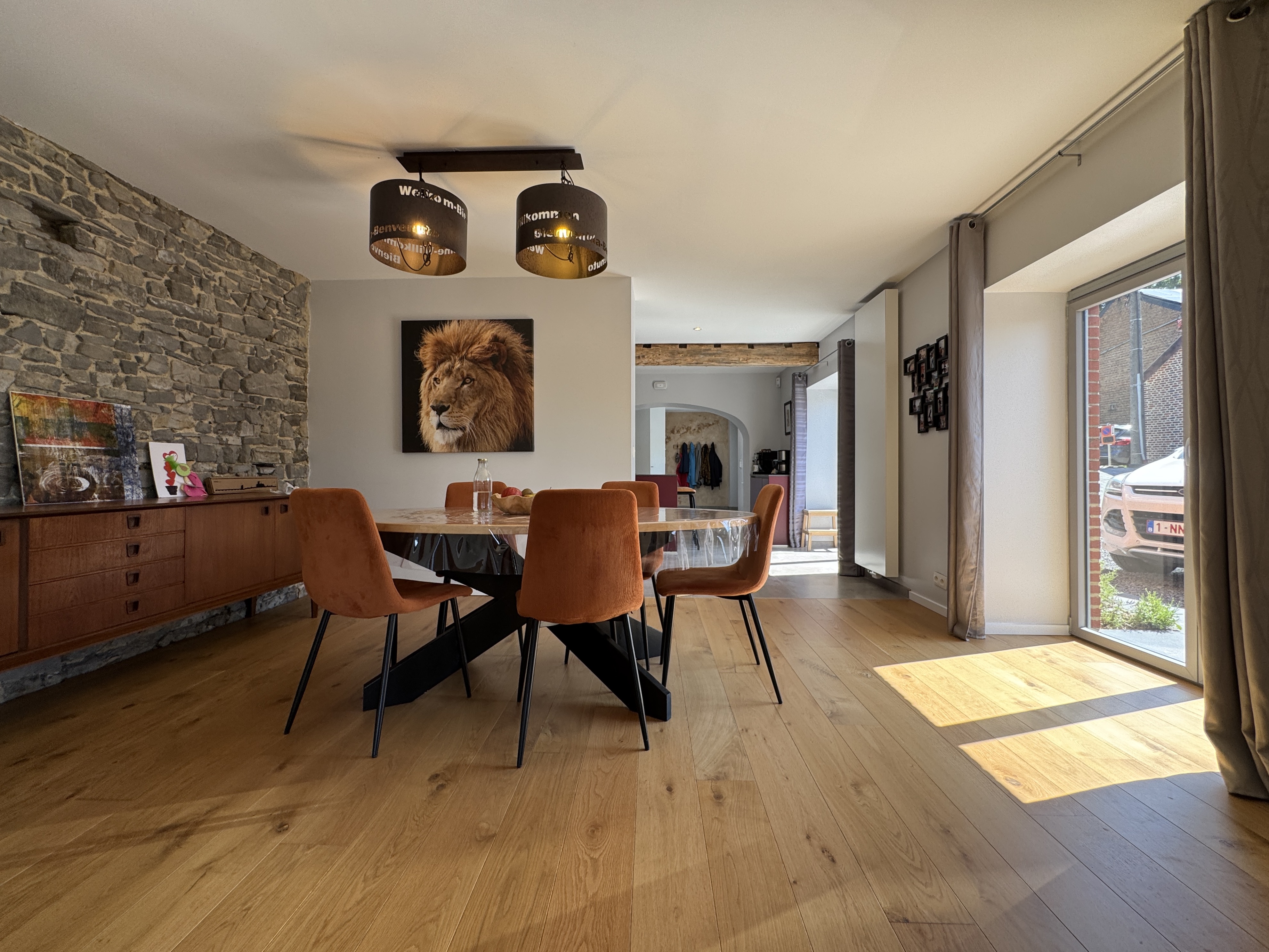 Salle à manger: (3.20x4.70) 15.00m2, parquet en chêne semi-massif, accès sur l'extérieur