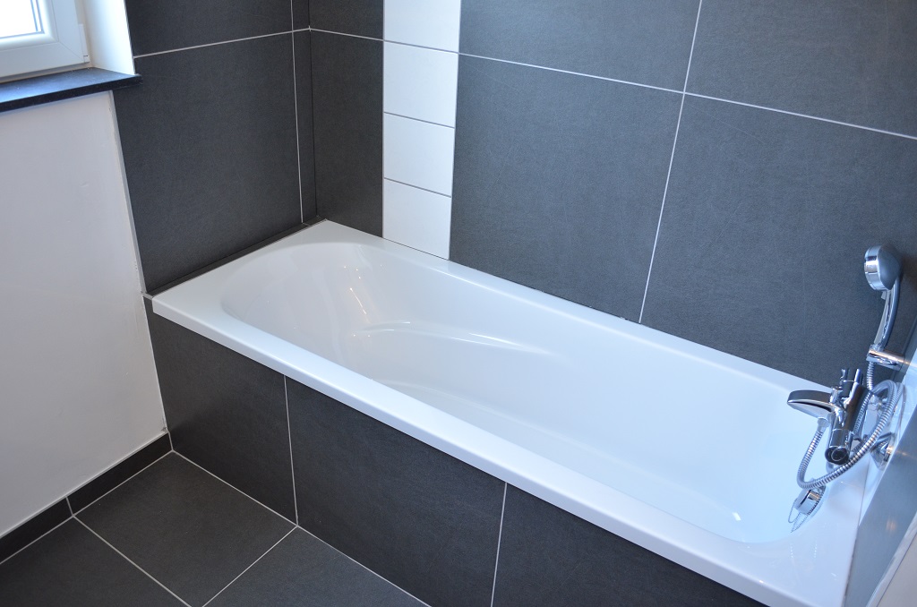 Salle de bains: (3.06x2.25)+0.53= 7.41m², carrelage, baignoire, meuble double lavabo avec colonne, tiroir et armoire pharmacie, sèche-serviette, espace buanderie