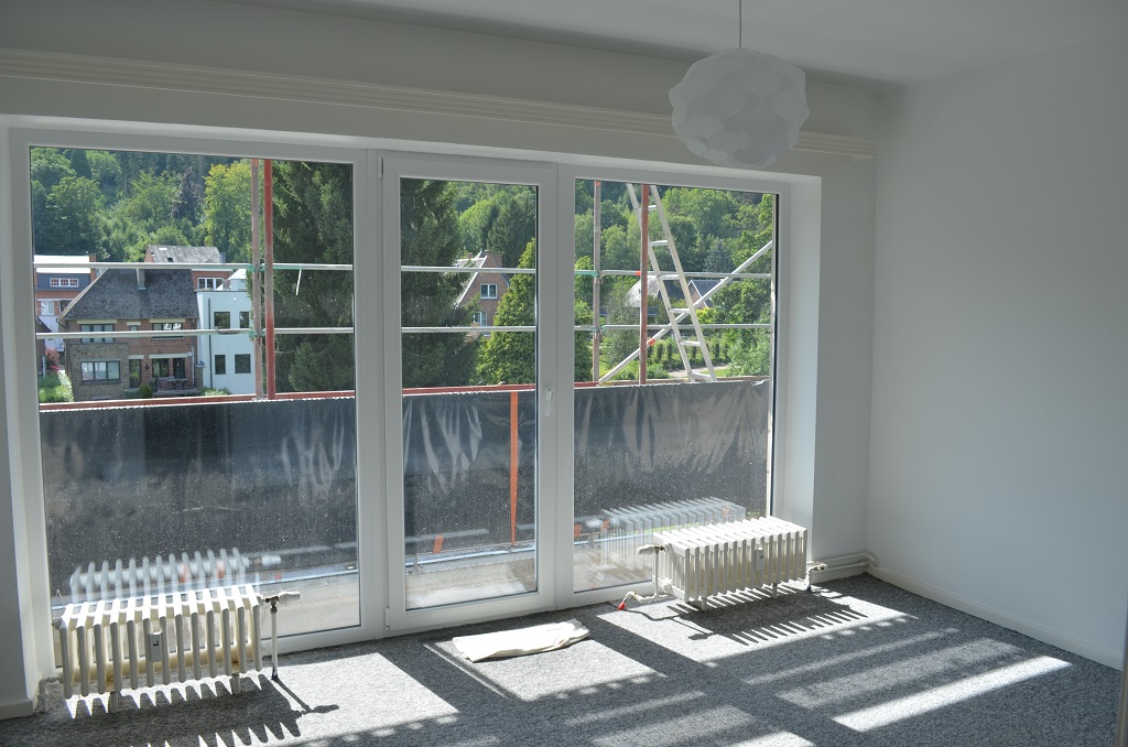 Situation enviable : dans un quartier prisé de La Plante, duplex 1 chambre dans une résidence en bord de Meuse. Il se compose d’un hall avec vestiaire, un lumineux séjour avec du parquet massif donnant accès via une grande baie vitrée sur une première terrasse orientée sud-ouest, une cuisine à équiper, une chambre de ± 17m² avec placards encastrés (accès sur la seconde terrasse via une grande baie vitrée) ainsi qu’une salle de bains. Electricité conforme, chauffage central au mazout, châssis neufs en double vitrage PVC, PEB : B. Renseignements complémentaires au 081/23.03.43.