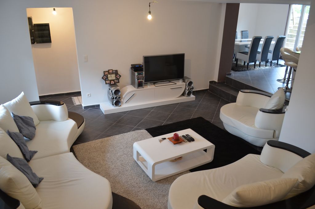 - Salle de douches: (3.12x1.82) 5.67m², carrelage, douche à l'italienne, meuble lavabo, wc suspendu Geberit suspendu, sèches serviettes, chaudière BULEX à condensation avec production d'eau chaude