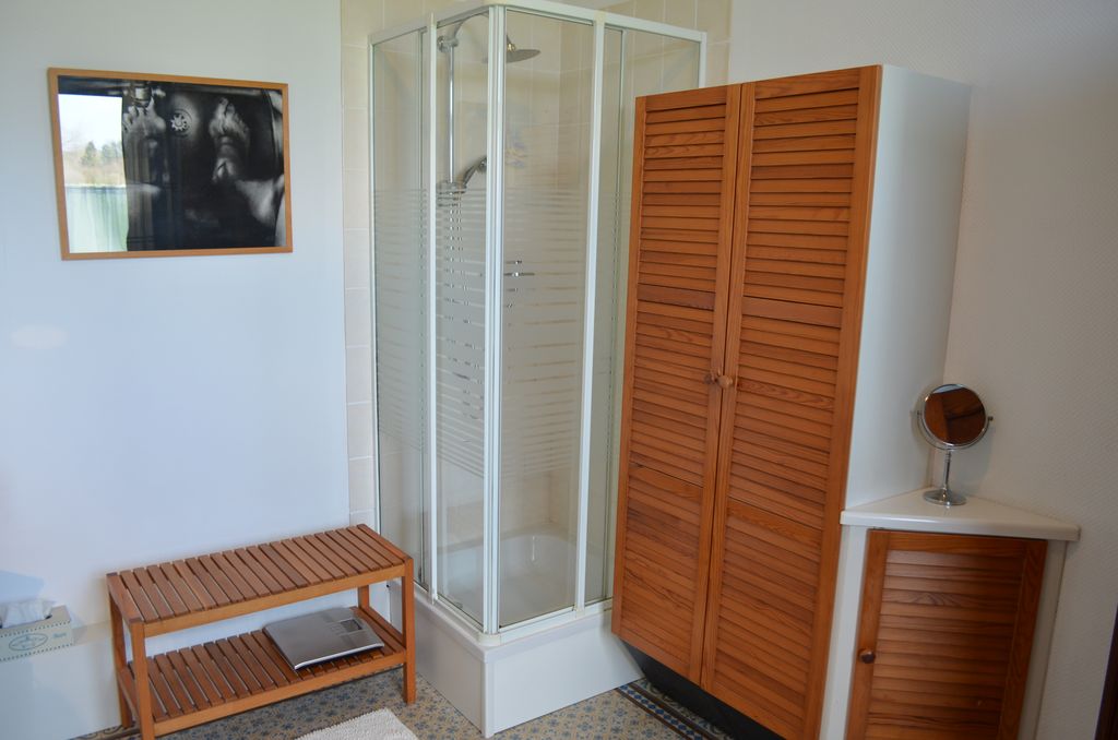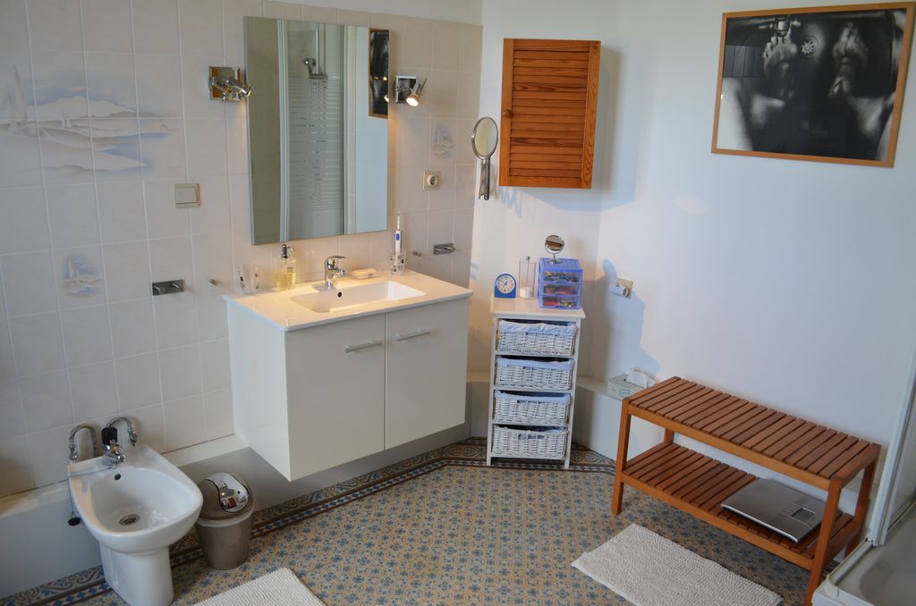 - Salle de bains: 11.2m², plancher, cabine de douches, meuble-lavabo, WC, bidet