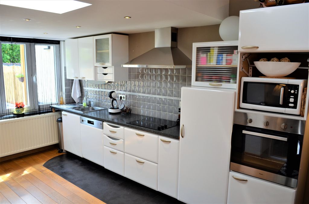 - Cuisine / salle à manger: (4.21x3.93) 16.55+12.05=28.60m², parquet massif en chêne, plafond mouluré, four électrique, taque vitro céramique, lave-vaisselle, hotte 90cm, double évier, accès extérieur