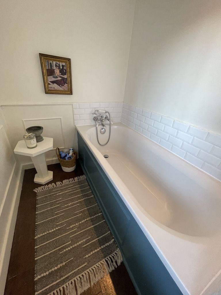 - Salle de bains et douches: (4.64x3.16) 14.66m², dalles de liège, baignoire, douche avec paroi vitrée, tube de douche plat 80x170, meuble double lavabo, meuble de rangement, wc suspendu Geberit